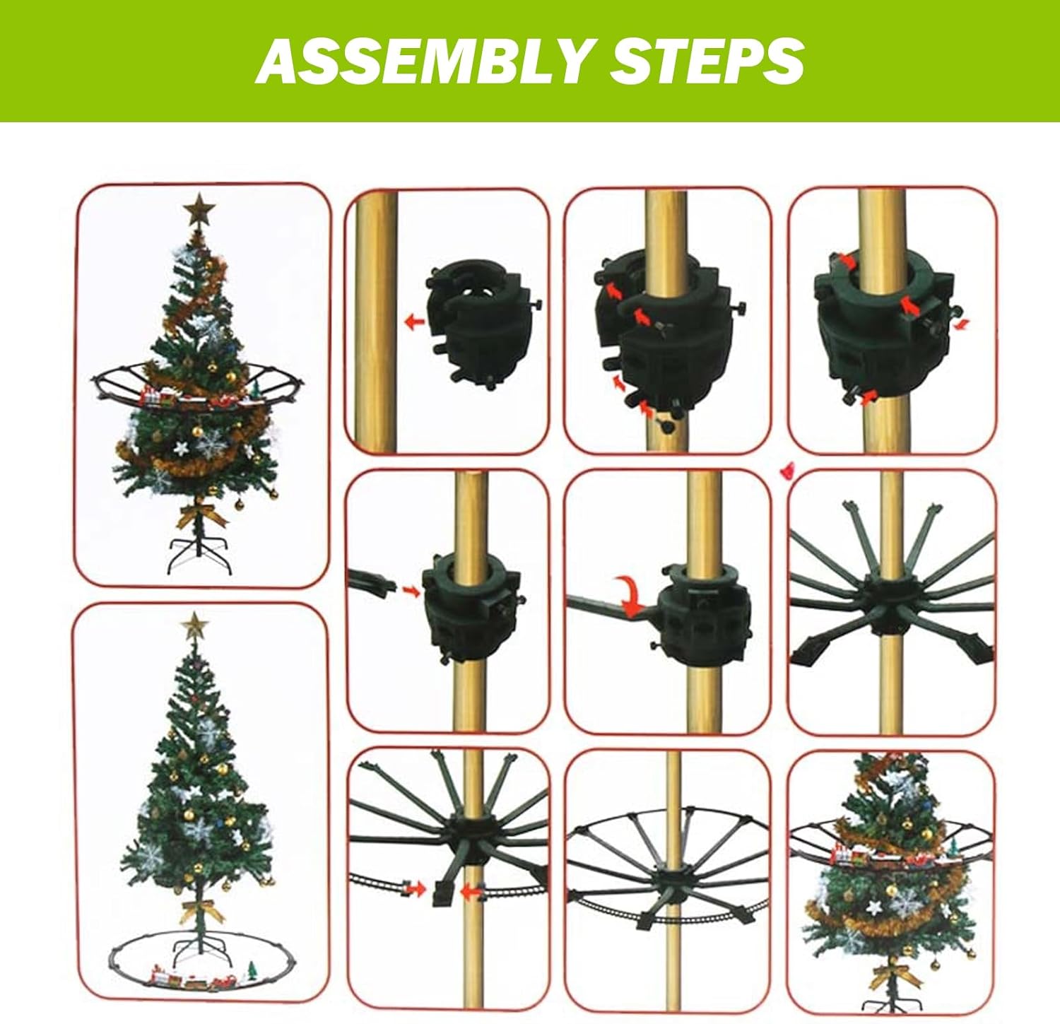 Fácil de configurar: la vía del tren colgante es fácil de ensamblar, con piezas que se juntan sin problemas, asegurando que circule de forma segura su árbol para una encantadora pieza central de vacaciones.