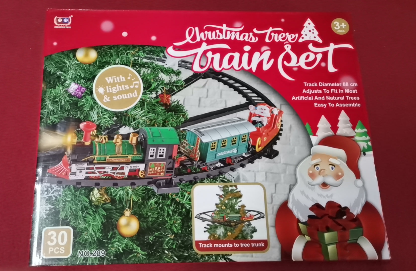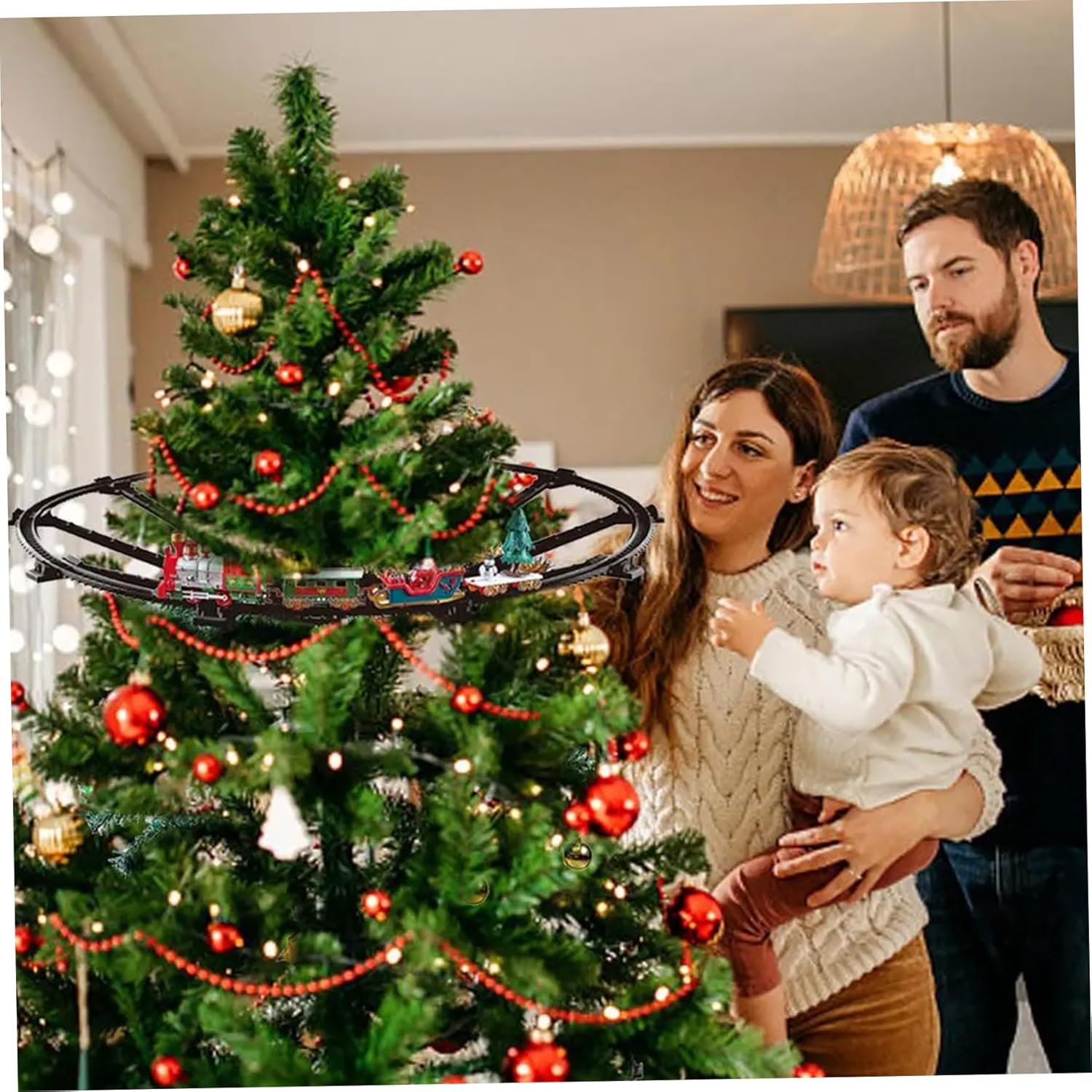 Juego de tren navideño completo: este juguete de tren de Navidad eléctrico incluye una locomotora, carruajes y piezas de pista que se ajustan perfectamente a su árbol, agregando un toque caprichoso a su decoración navideña.