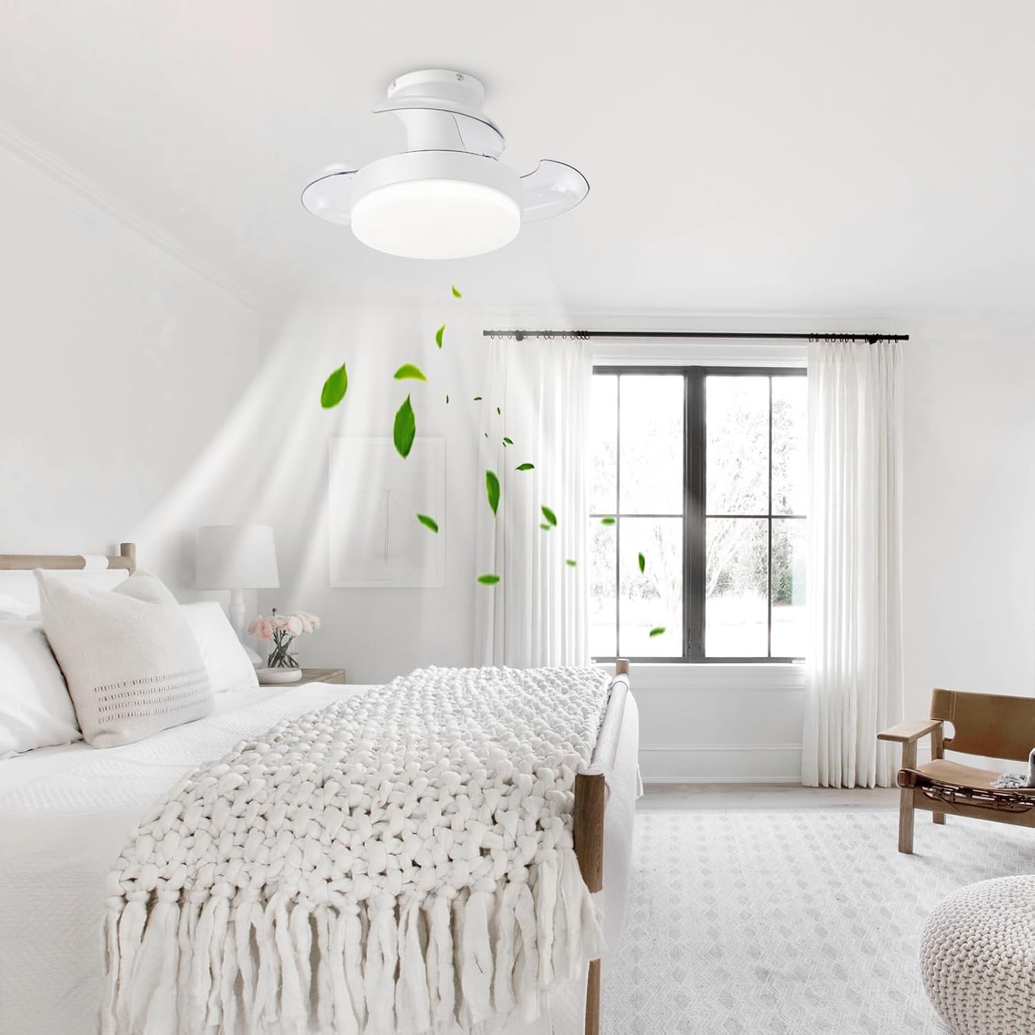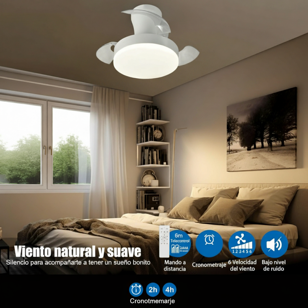 【Diseño Compacto 3 Hojas】Ventilador de techo con aspas plegables, ideal para dormitorios, cocinas y otras estancias pequeñas. Su diseño retráctil maximiza el espacio y aporta un estilo moderno y funcional.