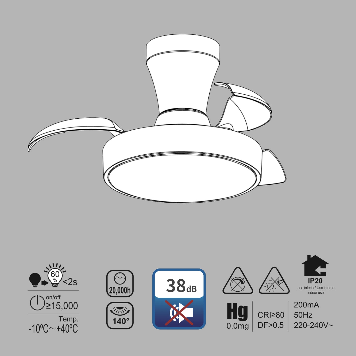 【Motor DC Silencioso】Equipado con motor DC 30W de última generación, sin escobillas y de bajo consumo, que garantiza un funcionamiento ultra silencioso (38 dB), ideal para leer, trabajar o dormir sin molestias.